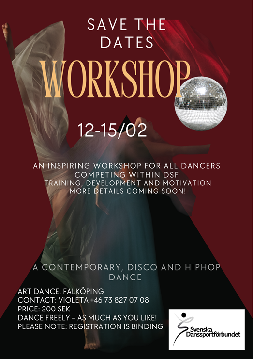 Den 12–15 februari arrangerar VO Disco/ Stage en workshop för alla dansare som tävlar inom DSF.