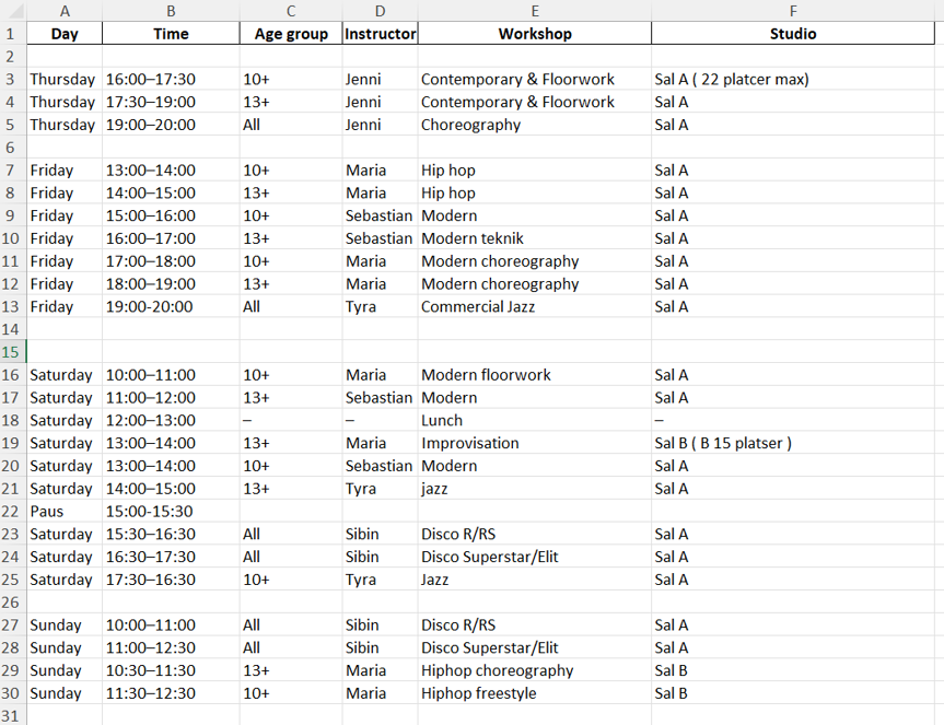 Workshopen är en breddsatsning, med fokus på utveckling, inspiration och dansglädje på alla nivåer.